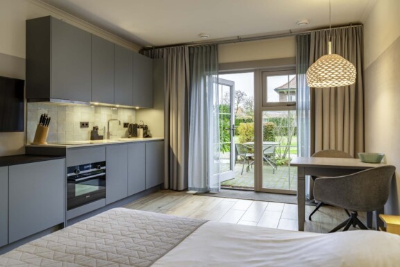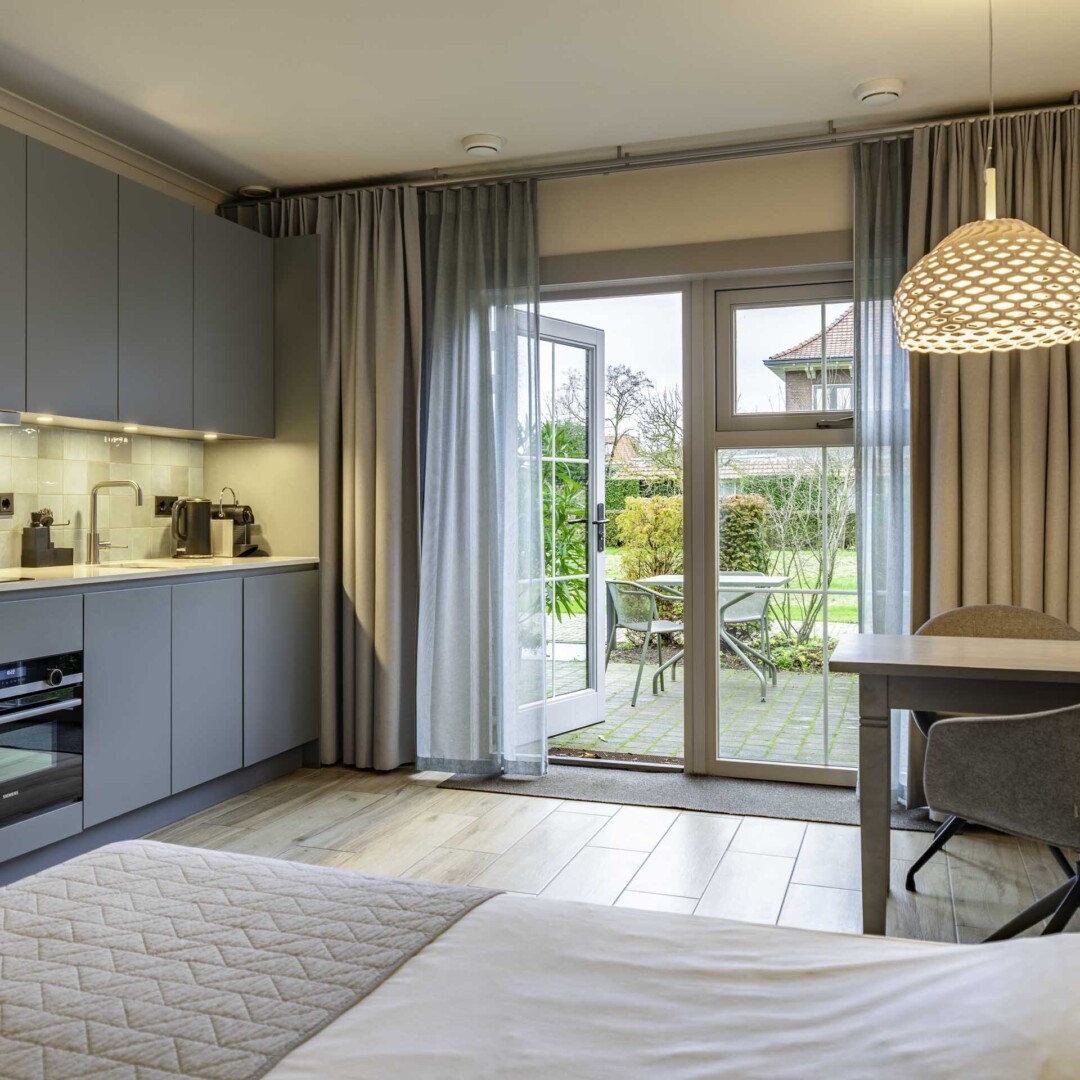 The studios are a natural place to unwind, where freedom and comfort come together. Bright spaces and a private outdoor area invite you to enjoy your stay at your own pace, whatever the season. Each studio has its own character, with an eye for privacy and tranquility, and a subtle connection to the landscape.